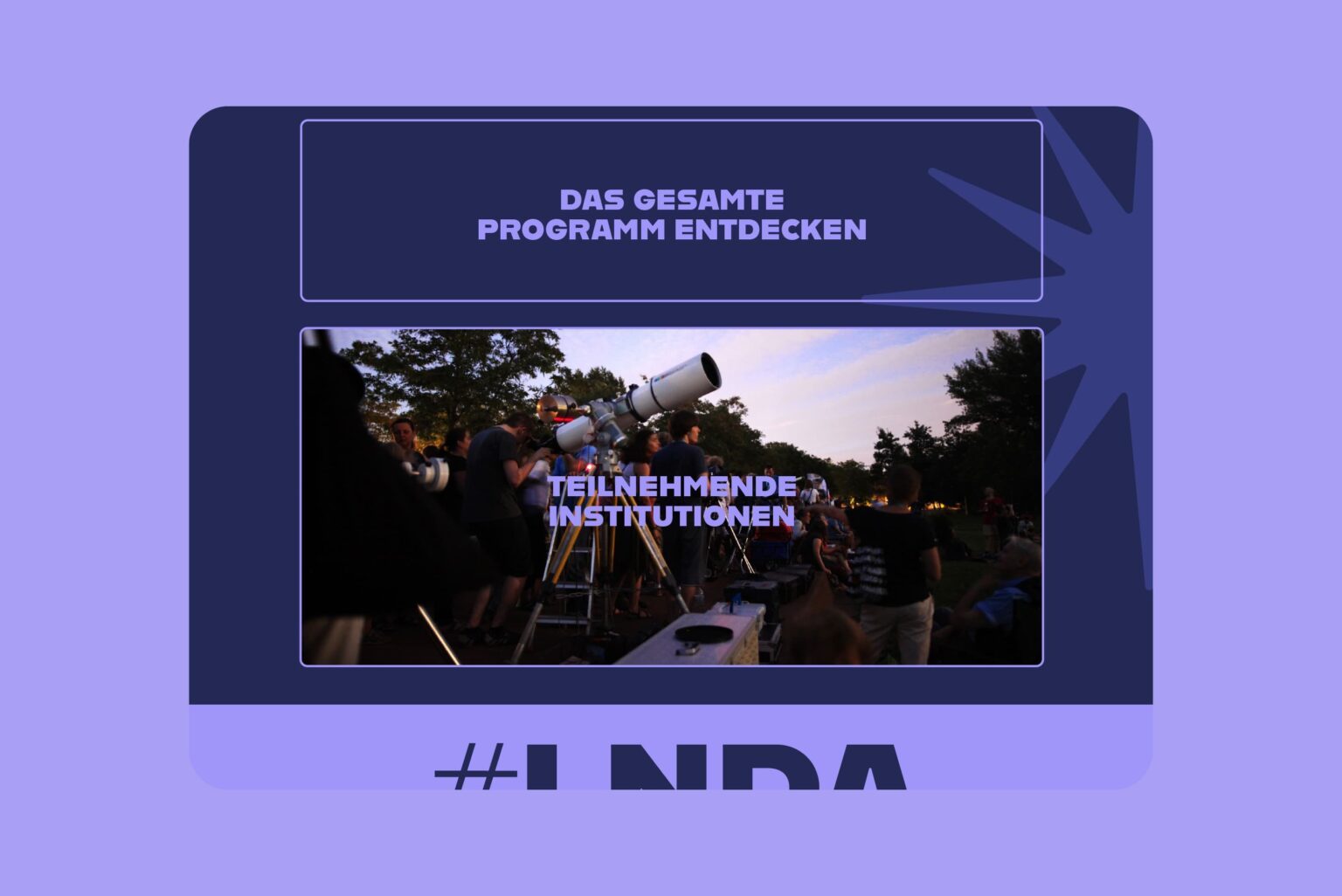 Für die bundesweite Lange Nacht der Astronomie hat Ta-Trung den Internetauftritt konzipiert und gestaltet. Die Website informiert übergreifend zum Programm der ausrichtenden Akteur:innen (Stiftung Planetarium Berlin, Gesellschaft Deutschsprachiger Planetarien und Vereinigung der Sternfreunde).